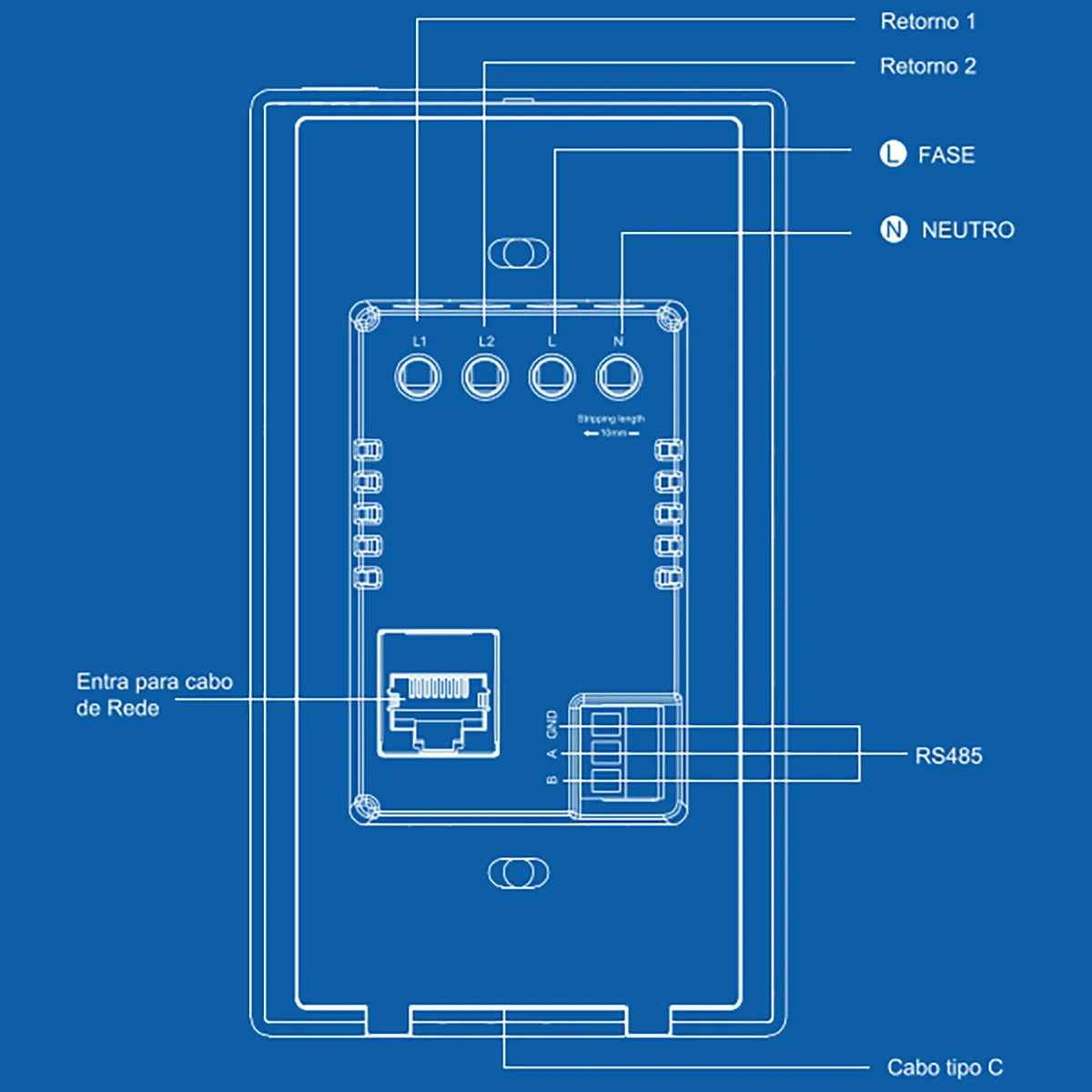 ATENÇÃO! Esse produto deve ser instalado diretamente na energia utilizando fase e neutro, e caso seja instalado com uma fonte pela saída USB-C